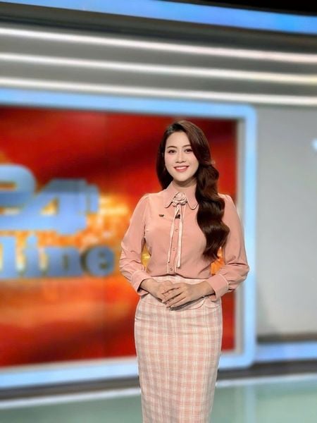 MC Anh Thi tại buổi quay hình thời sự VTV8