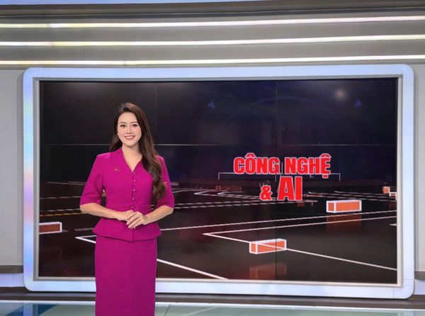 MC Anh Thi truyền hình trực tiếp bản tin thời sự trên kênh HTV9