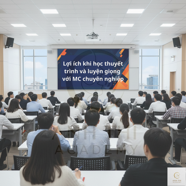 - Tập trung thực hành 80% thời gian học: đứng sân khấu, cầm micro, xử lý tình huống thực tế.